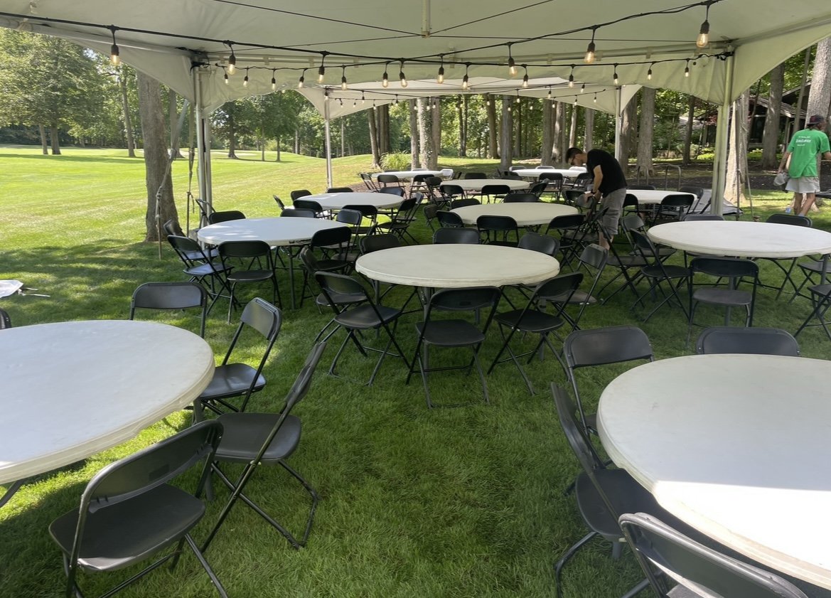 Yes — tent set up and delivery is included in your emailed estimate. We do not set up tables and chairs unless requested and there is a fee.